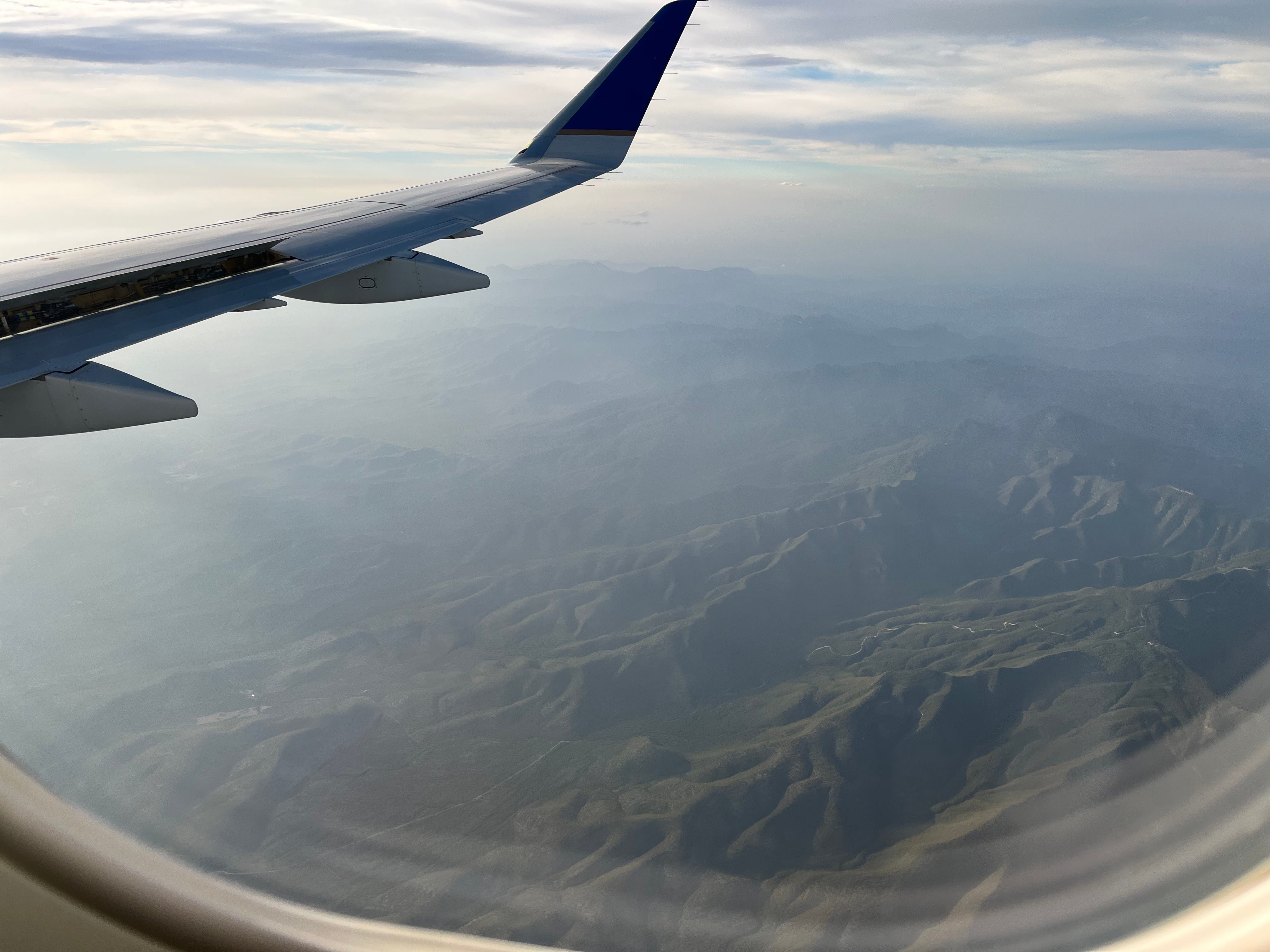 然而当飞机进入墨西哥境内时,一切的面貌都改变了。大地的起伏开始明显起来,一条条的山脊在中美洲的大地上绵延起伏,蜿蜒盘桓。作为一个从小在山区长大的孩子,我内心升起了许多的亲切感,也越来越兴奋起来。