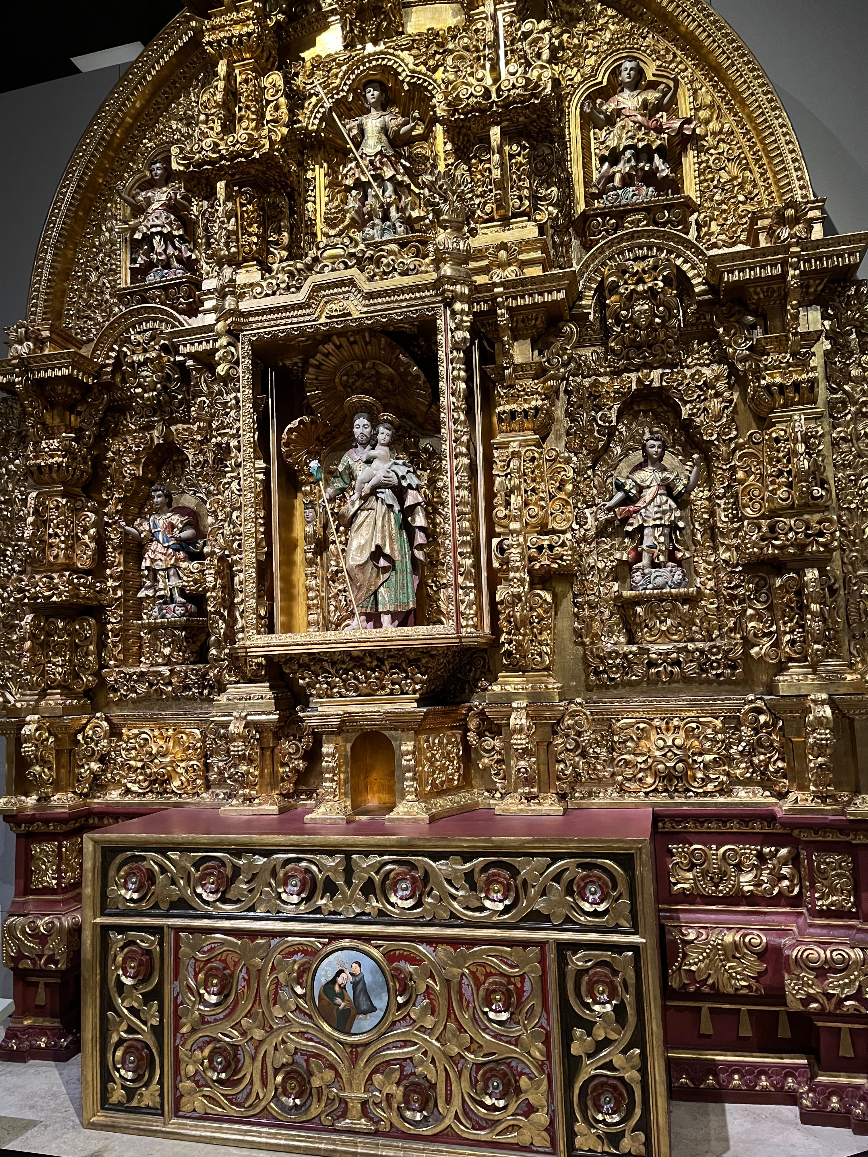 殖民者带来的不仅有苦难,还有宗教。众所周知,基督教和天主教长时间深刻地影响着欧洲。在宗教改革、文艺复兴和启蒙运动之前漫长的中世纪,宗教的力量统治着整个欧洲。西班牙殖民者把天主教带到了墨西哥,这种影响之深远,今天天主教依然是墨西哥最主要的宗教信仰,占据着墨西哥人生活的很大一个部分。从墨西哥历史博物馆的陈列来看,这种历史反应在艺术创作上就是风格断层的出现。古代文明时期的拉丁美洲艺术作品通常把各种图腾、神兽雕刻成石雕或者绘制于陶器之上,技术粗犷而原始,反应的是质朴的信仰和比较原始的生活。然而,在西班牙殖民者到达拉丁美洲之后,艺术创作的主题迅速被天主教宗教题材所占据。所使用的材料也由之前的石、陶等变成了贵重的金银。艺术创作的手法由想象的、写意的迅速向写实的、极为精致繁复的风格转变。在这中间是缺乏过渡风格的。这种不自然,也是殖民主义粗暴介入的一个体现。
